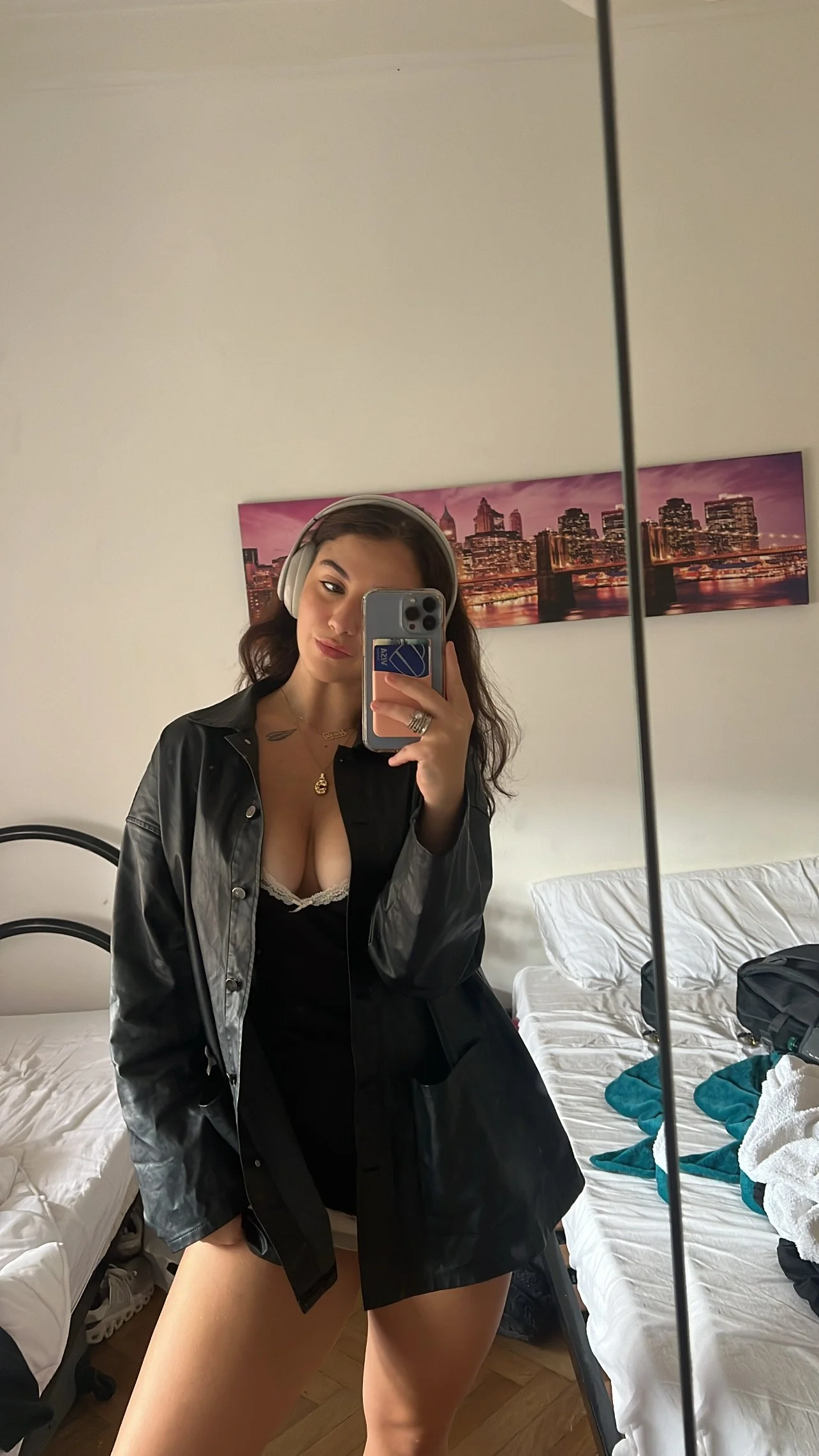 Another school day: Tank top is from Brandy Melville, leather jacket was from Shein back in 2021 that I absolutely ruined in Italy from all the wear and tear. “C” necklace is Amazon!