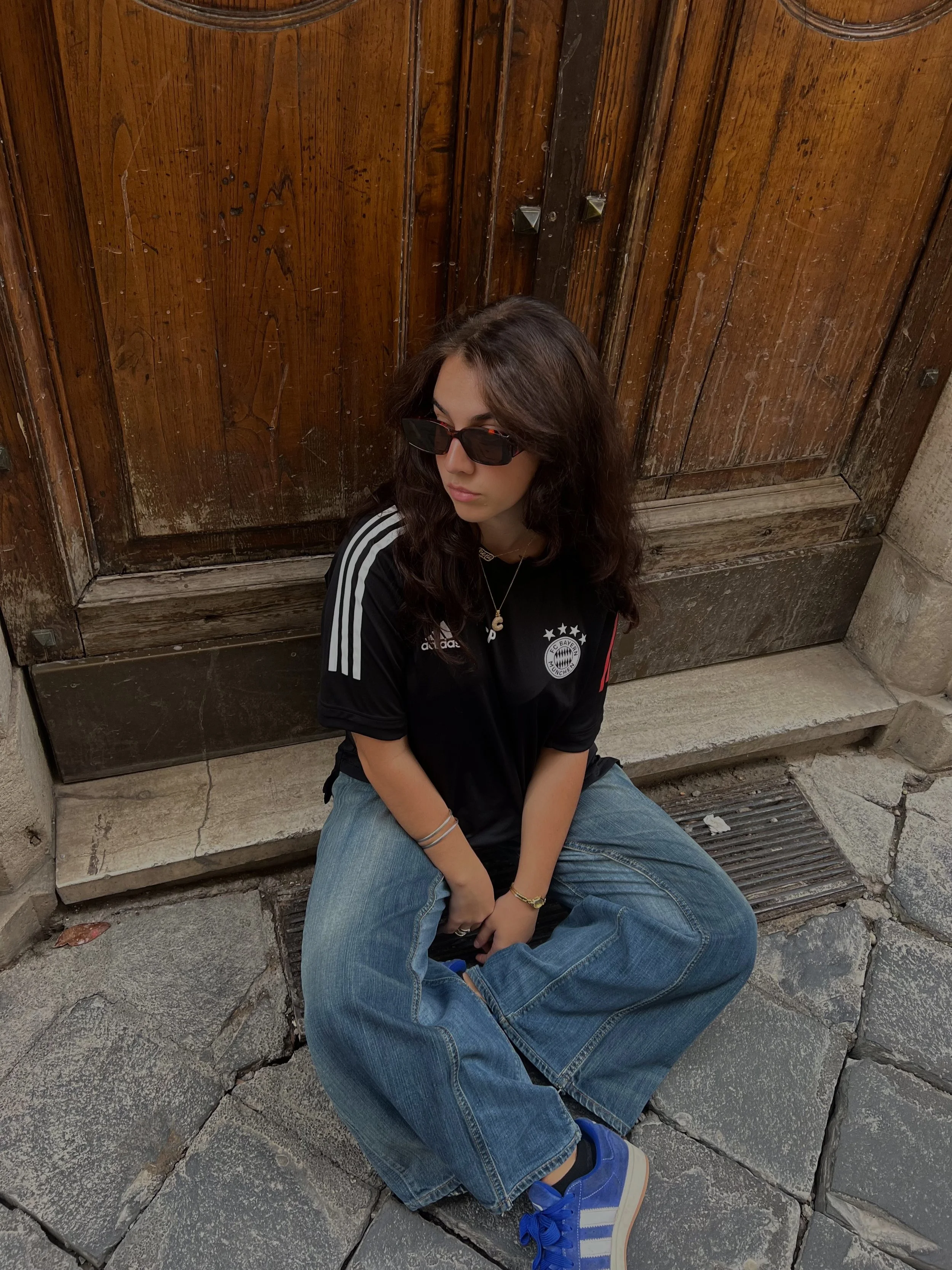 Even in Rome, I had to continue to support my favorite football team, Bayern Munich. I thrifted this Bayern kit in Rome and pair it with my Levis 501s, and baby blue Adidas Campus’s. Sunglasses are from Target and necklace is Amazon.