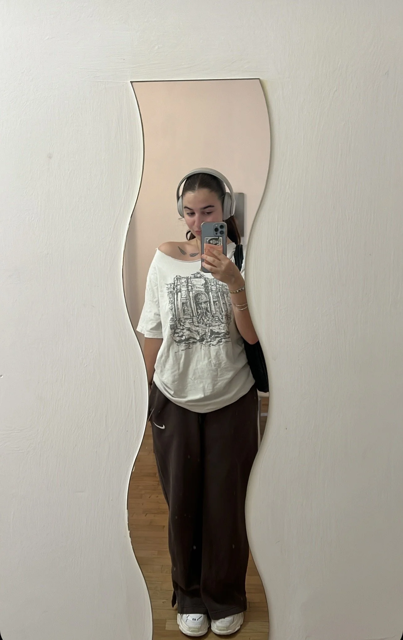 Another class fit with this Brandy Melville t-shirt, those same chocolate sweatpants from Nike, and the Balenciaga sneakers. Headphones are Beats.