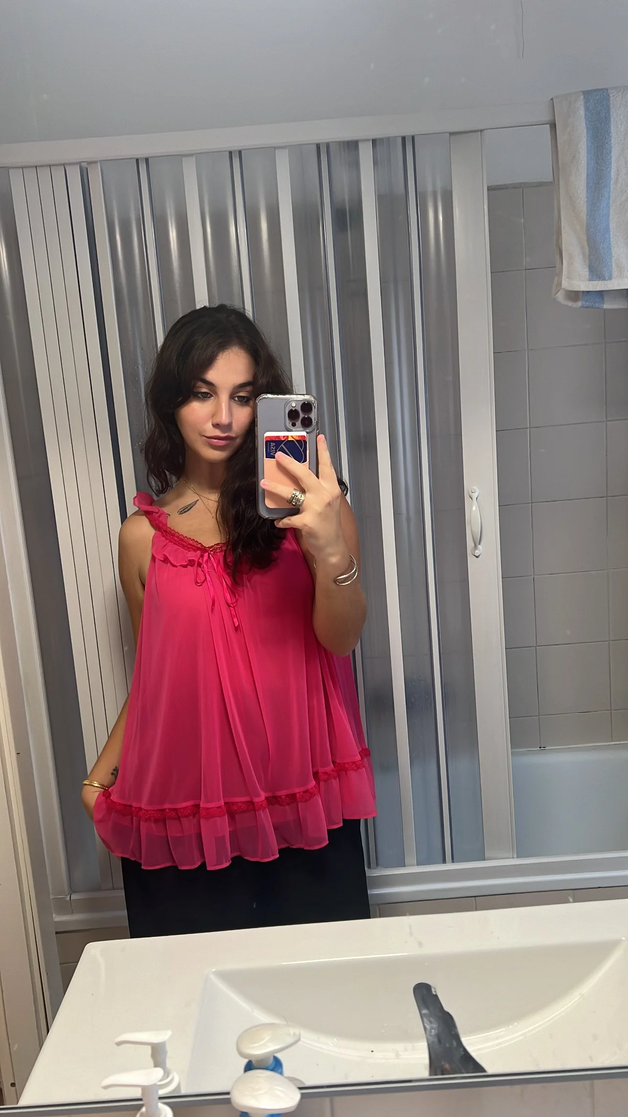 Spring break in Mykonos and absolutely beautiful there. I got this plain Ballerina dress from TJ Maxx and it was so comfortable. Necklace is Amazon. My watch is my mom’s and my bracelet is a Nomination bracelet.