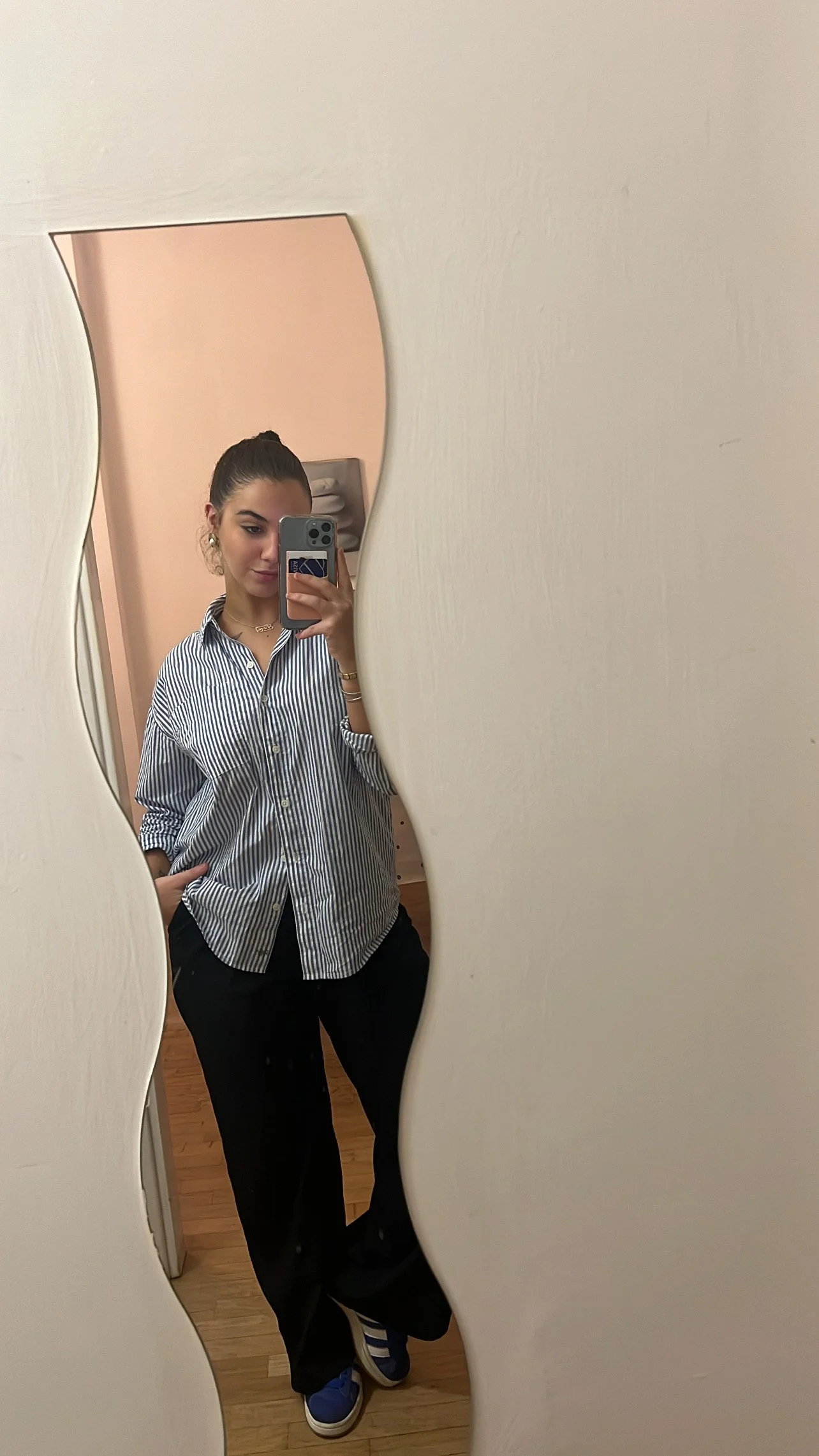 I loved this Zara blue striped button-down paired with my Amazon trousers and my blue Adidas Campus’s.